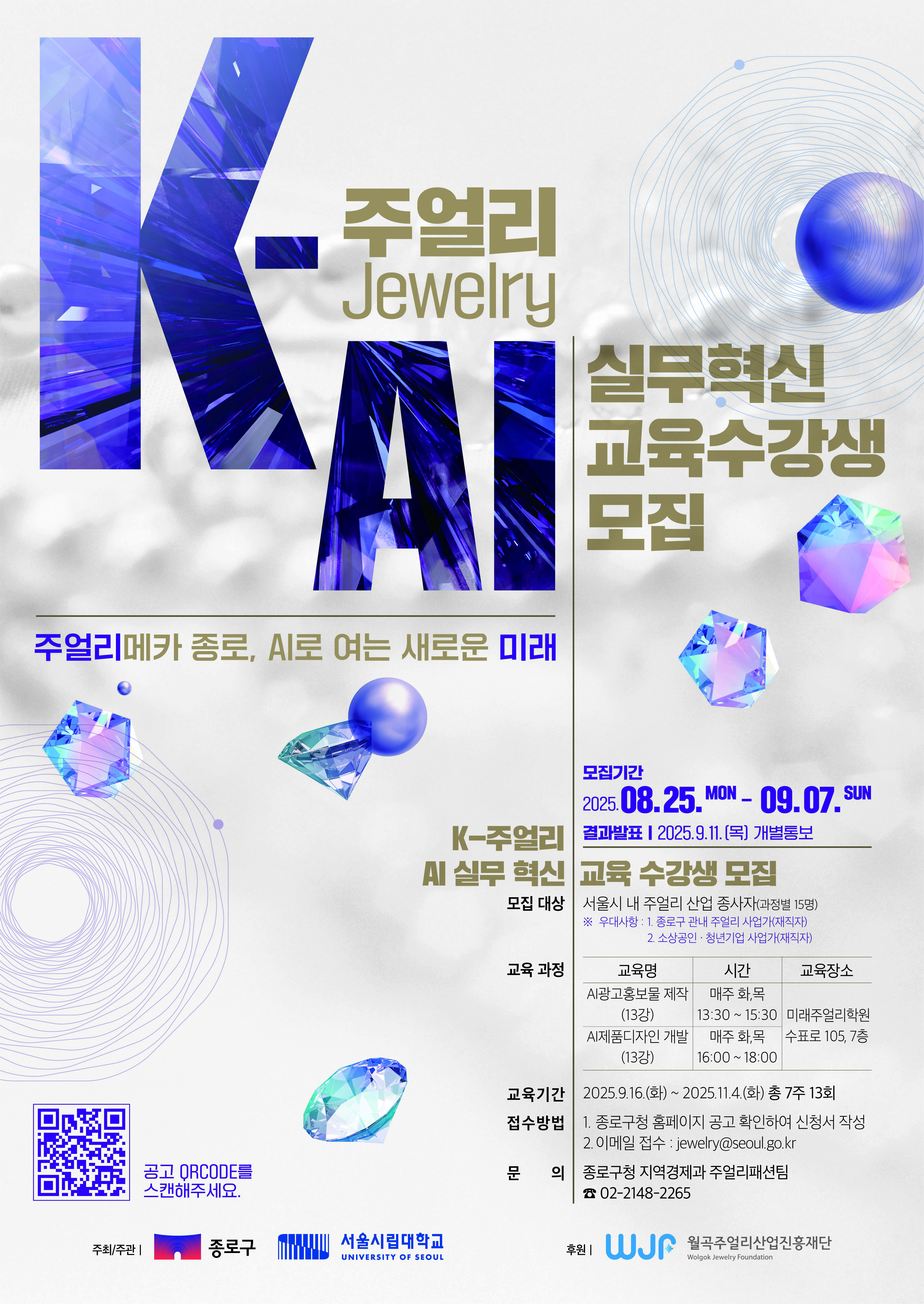 종로구, 'K-주얼리 AI 실무 혁신 교육' 수강생 모집 | ||||